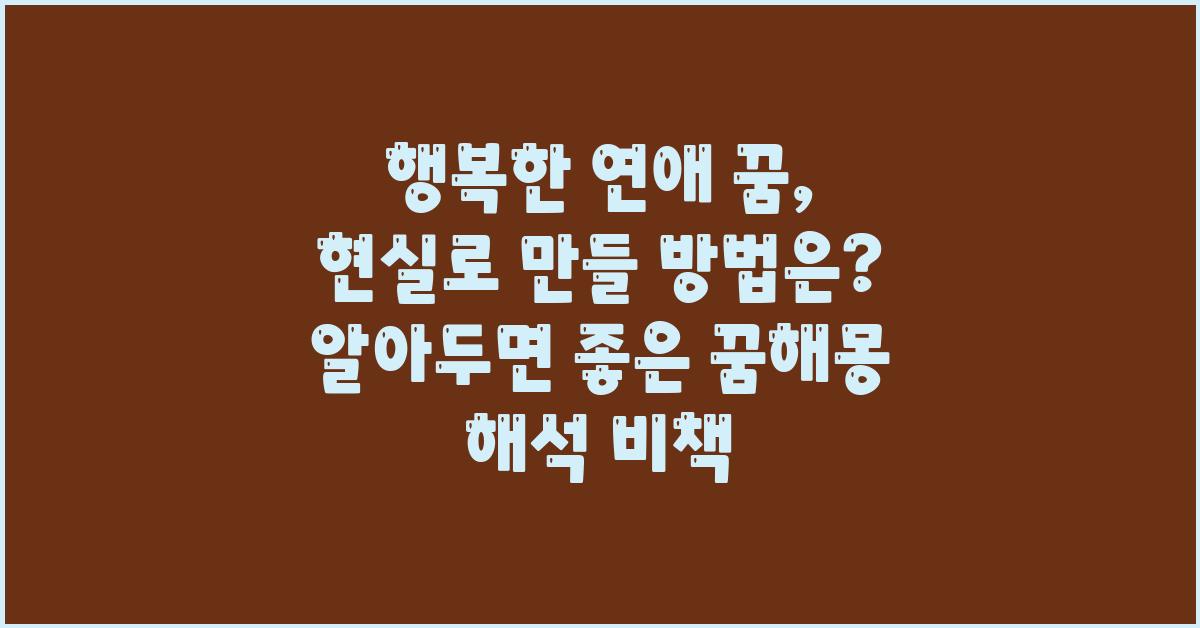 우리 모두는 사랑에 대한 꿈과 기대가 가득합니다. 행복한 연애 꿈, 현실로 만들 방법은? 이 질문은 많은 사람들이 한 번쯤은 해봤을 법한 고민일 것입니다. 그렇다면 이러한 꿈을 현실에서 실현하기 위해서는 무엇이 필요할까요? 좋은 연애는 마음과 노력이 필요한 만큼, 꿈해몽에 대한 해석도 함께 알아보는 것이 중요합니다. 이번 글에서는 행복한 연애 꿈을 이루기 위한 몇 가지 비책을 나누어 보겠습니다.
