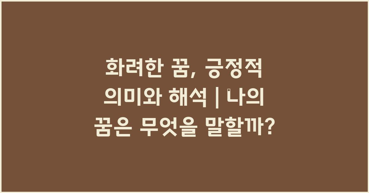 화려한 꿈: 긍정적 의미와 해석 | 꿈해몽 꿈풀이 꿈해석 꿈의미는 우리에게 많은 통찰을 제공합니다. 이러한 꿈을 통해 우리는 자신의감정과 상황을 점검하고, 삶에서 나아가야 할 방향을 찾을 수 있습니다. 긍정적인 꿈은 종종 성공, 기쁨, 사랑과 같은 요소와 연결되어 있기도 하죠.