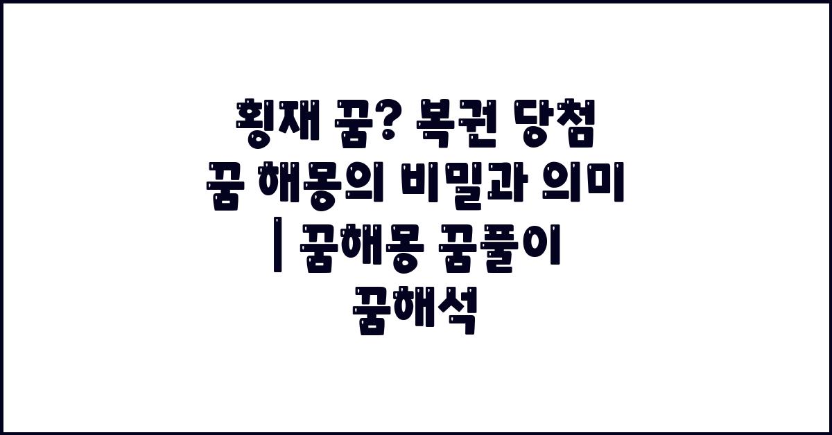 🔍 횡재 꿈과 복권 당첨 꿈의 해석