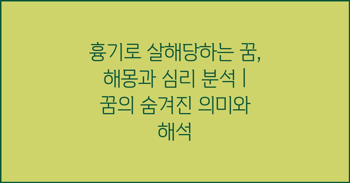흉기로 살해당하는 꿈을 분석할 때는 상징적인 요소들을 주의 깊게 살펴보아야 한다. 예를 들어, 흉기가 너에게 직접적인 상처를 입히는 경우, 이는 대인관계에서의 문제를 나타낼 수 있다. 나 자신도 일상 생활에서의 갈등과 두려움이 이렇게 상징적으로 드러날 수 있다는 사실에 종종 놀라곤 했다. 꿈의 해몽, 심리 분석은 이러한 비현실적인 상황을 통해 주의를 끌고, 상대방과의 관계를 깊게 분석하게 만든다.