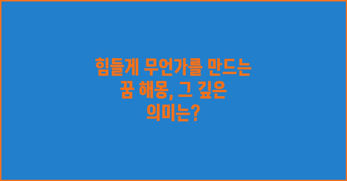 꿈은 우리의 무의식 속에서 다양한 메시지를 전달하는 중요한 매체입니다. 그 중에서도 힘들게 무언가를 만드는 꿈은 특별한 의미를 지닙니다. 이러한 꿈을 꿨을 때, 이는 현실에서의 어려움이나 고통을 반영하는 경우가 많습니다. 힘들게 무언가를 만드는 꿈 해몽 | 꿈해몽 꿈풀이 꿈해석 꿈의미에 대해 알아보면, 자신의 노력과 인내가 실제 삶에서 어떻게 작용하는지 깨달을 수 있습니다.